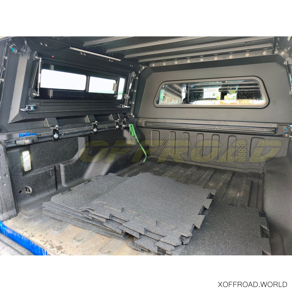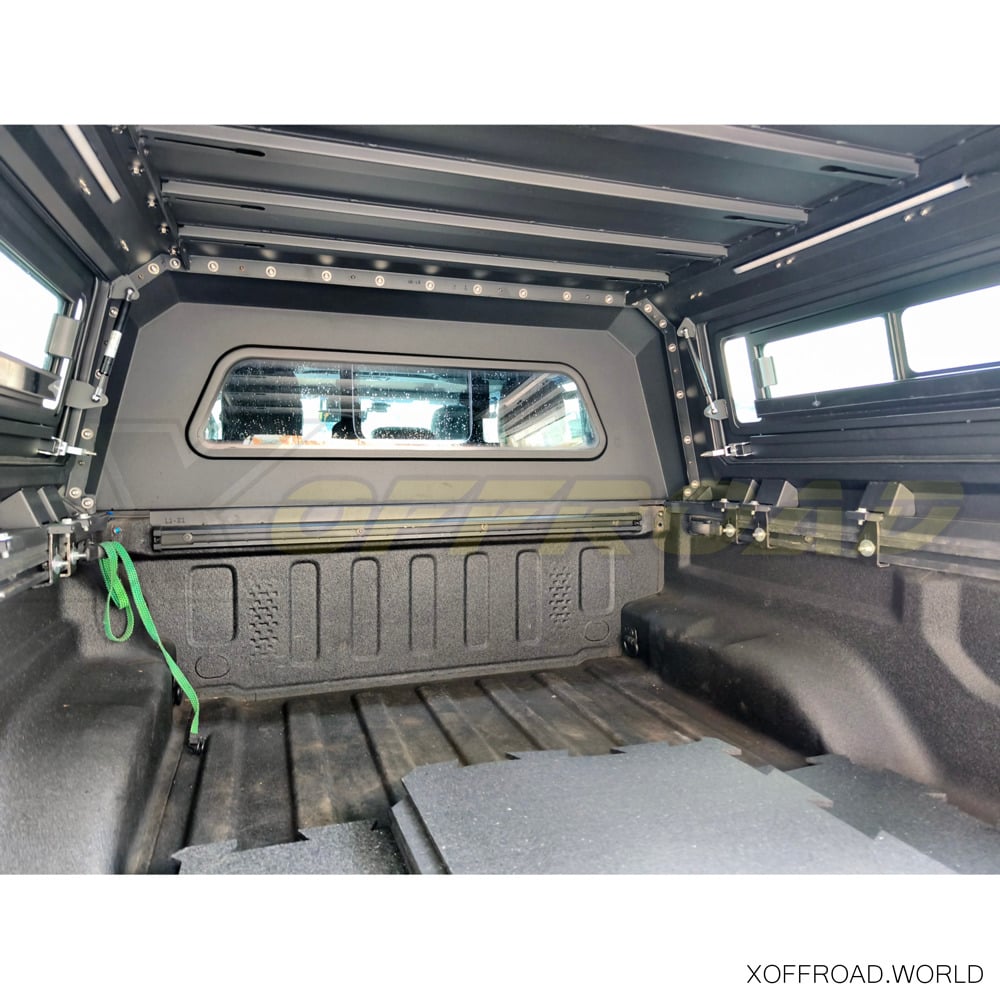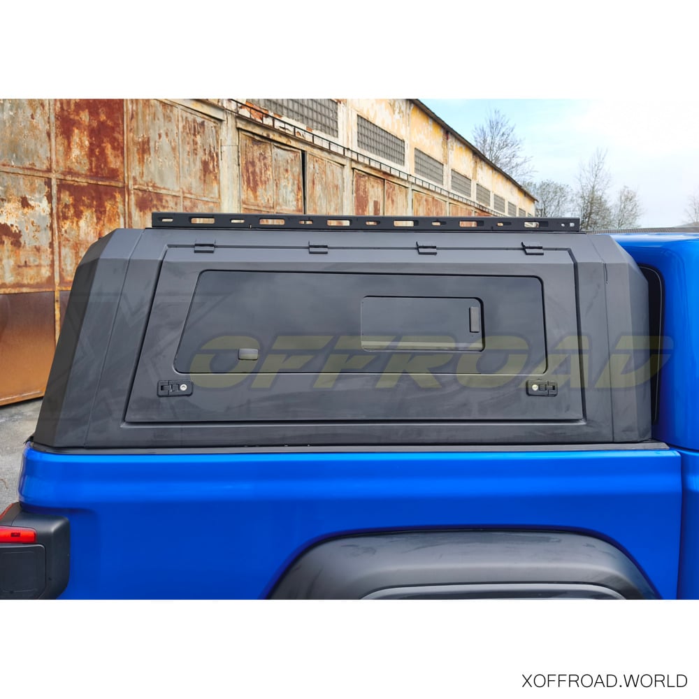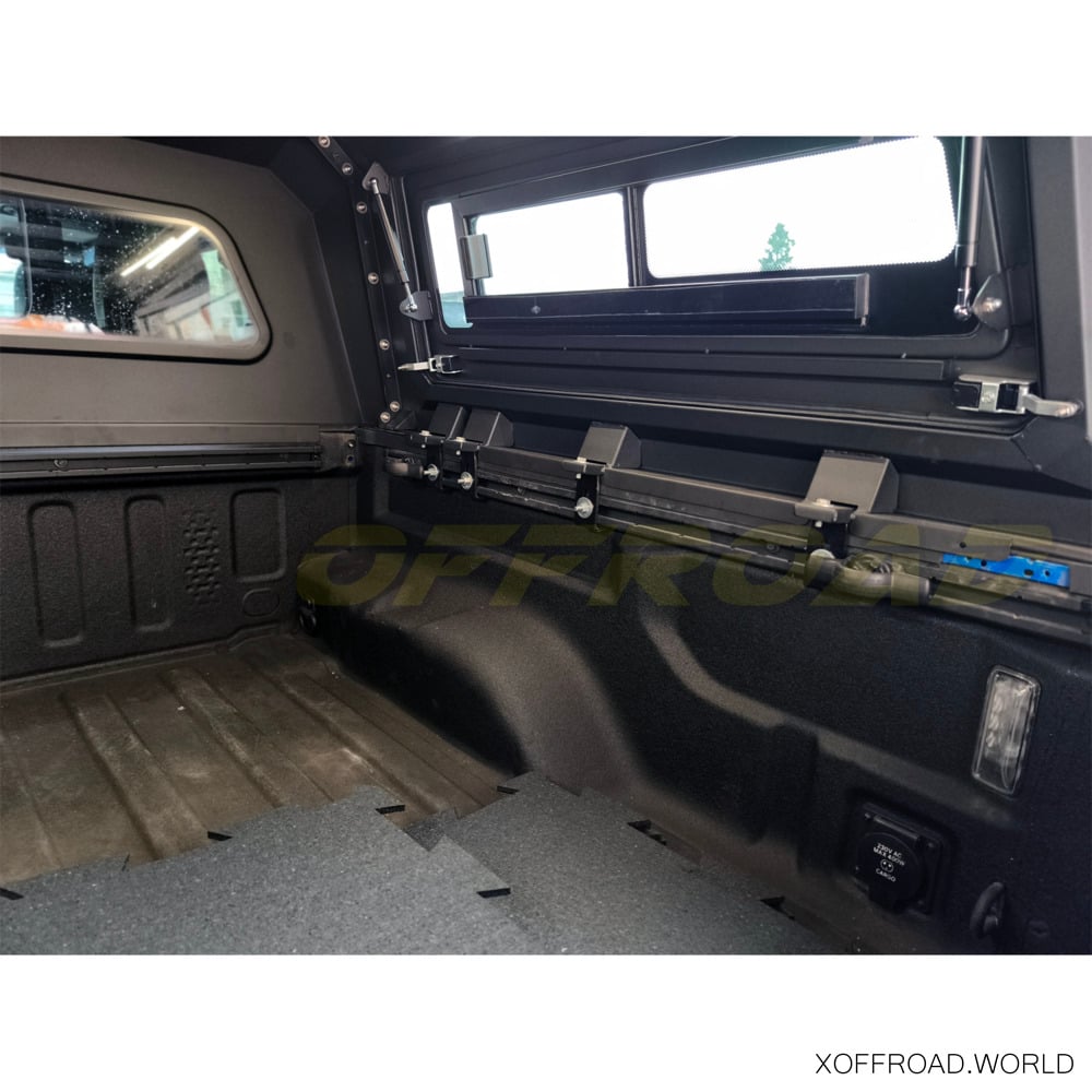 De X-Offroad Truck Bed Canopy biedt een robuuste veiligheidslaag voor de opbergruimte van je Jeep Gladiator. Uitgerust met afsluitbare, stevige zijdeuren en een afsluitbare achterruit, die voorzien zijn van sterke sloten en duurzame, sabotagebestendige materialen, zorgt deze laadruimteafdekking ervoor dat je apparatuur beschermd blijft tegen diefstal of schade door invloeden van buitenaf. Dit beveiligingsniveau is essentieel voor reizigers en avonturiers die vaak waardevolle apparatuur bij zich hebben en betrouwbare bescherming nodig hebben terwijl hun voertuig op afgelegen locaties geparkeerd staat of onbeheerd wordt achtergelaten tijdens buitenactiviteiten. Dankzij deze zekerheid kunnen eigenaars met een gerust hart op avontuur gaan, wetende dat hun bezittingen veilig zijn. De X-Offroad Truck Bed Canopy heeft een geïntegreerd derde remlicht. Alle ramen zijn getint om de invloed van de zon en ongewenste blikken te verminderen.